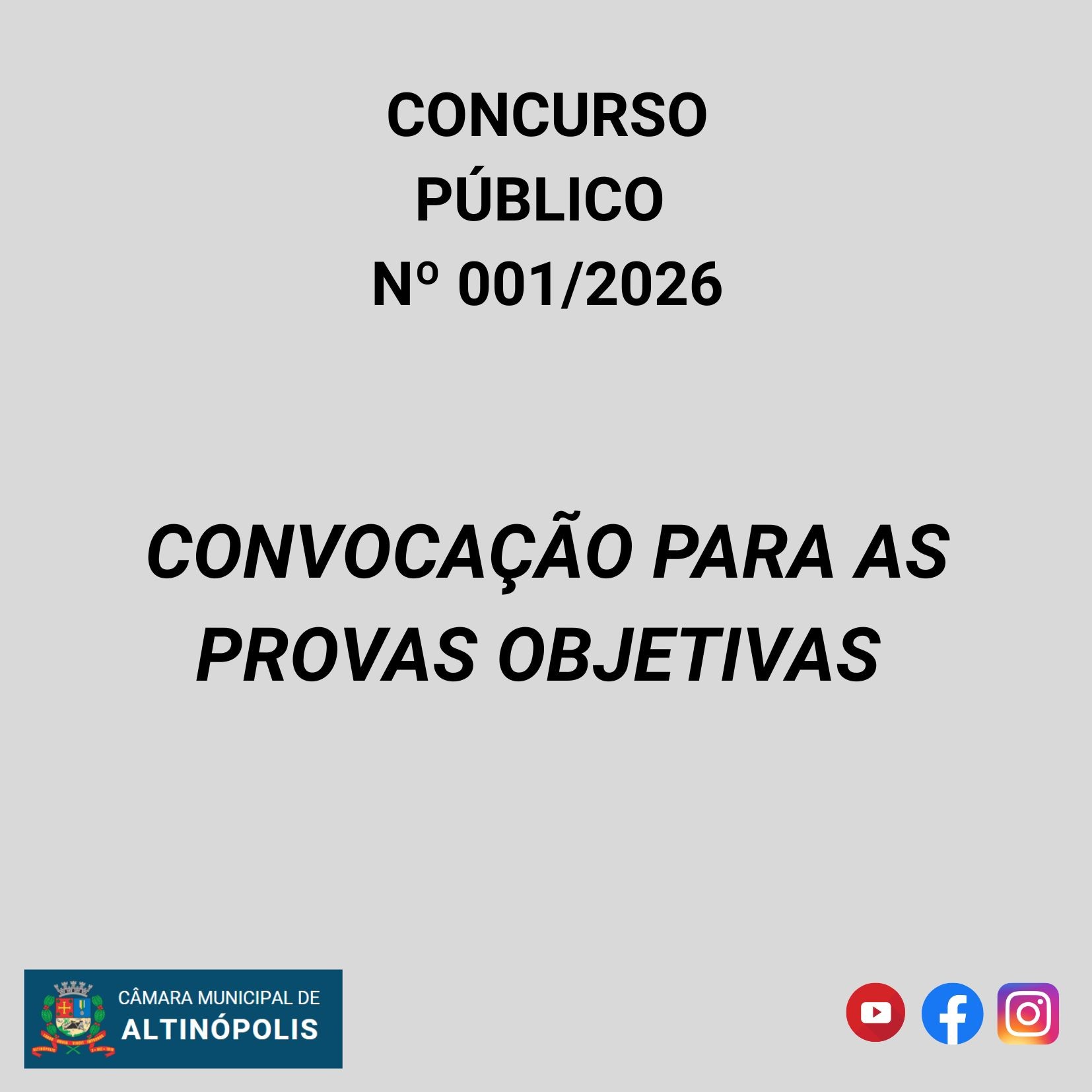 CONVOCAÇÃO PARA AS PROVAS OBJETIVAS